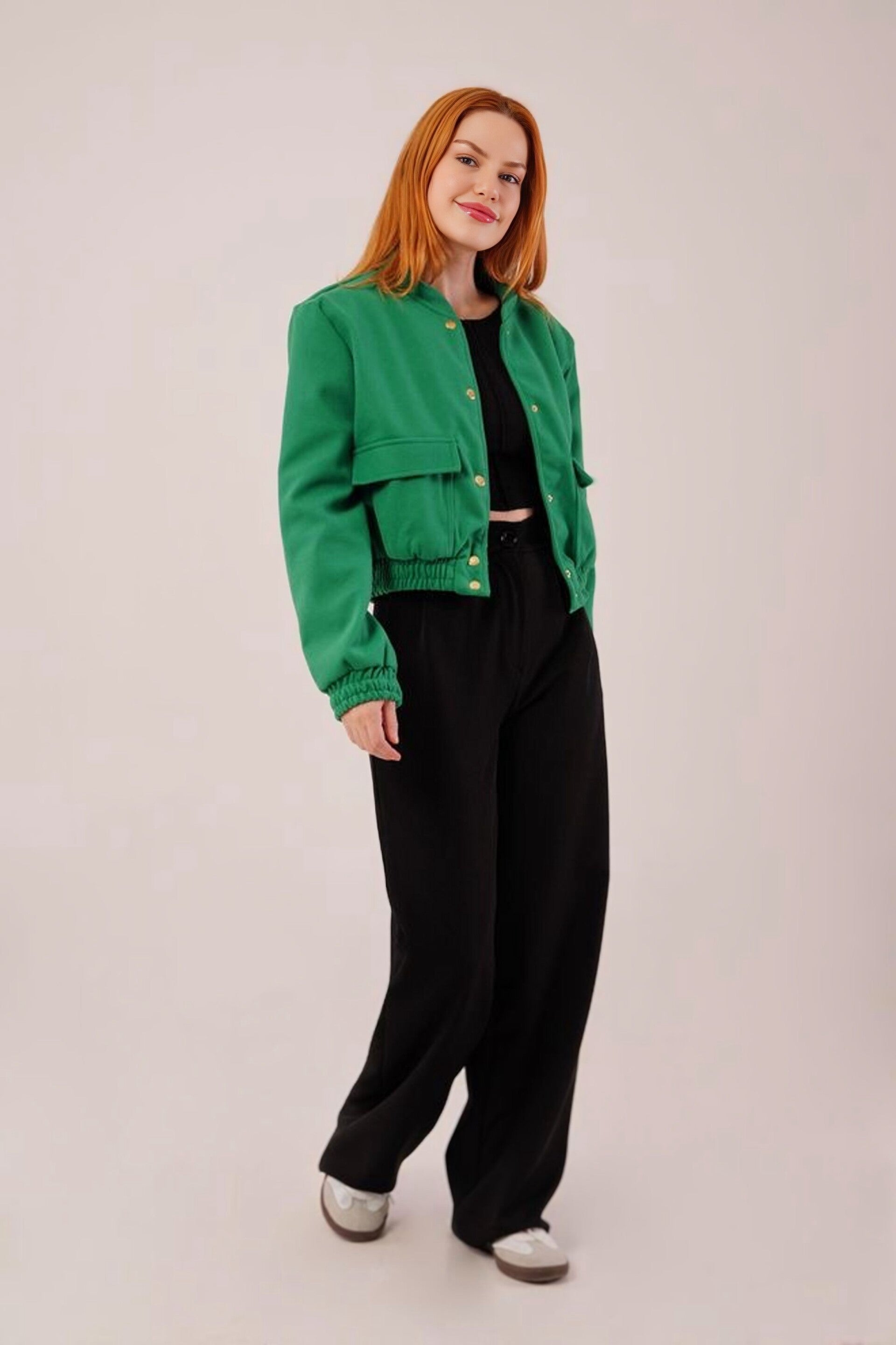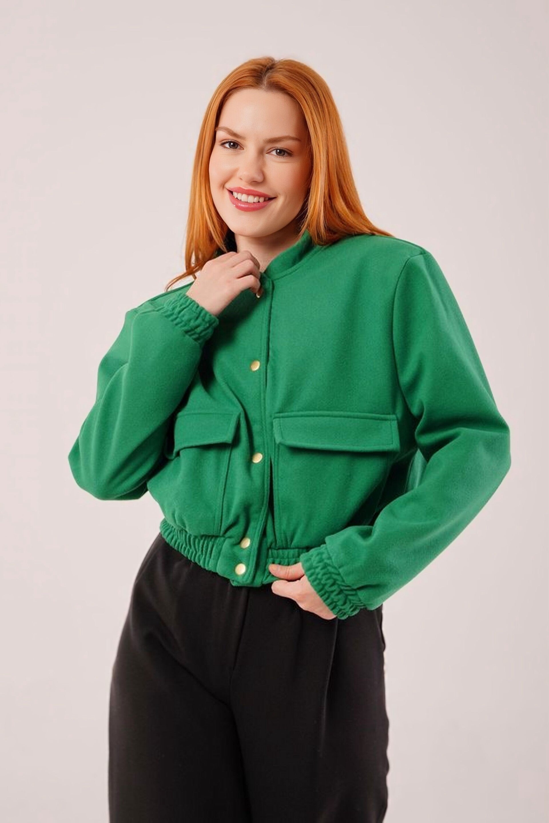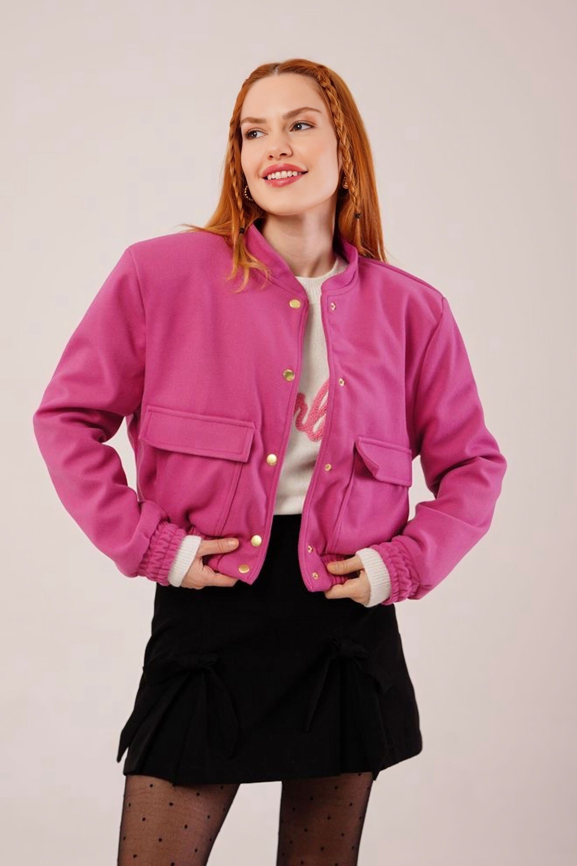 Kasjmier Bomberjack Met Gouden Knopen Voor Groothandel In Fuchsia